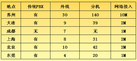 各地的IPPBX會(huì)自動(dòng)識(shí)別輸入的號(hào)碼,并且通過網(wǎng)絡(luò)把號(hào)碼送到蘇州總部的1200交換機(jī),江蘇的1200交換機(jī)已經(jīng)通過E1與江蘇網(wǎng)通的NGN服務(wù)器對(duì)接。網(wǎng)通收到你輸入的被叫號(hào)碼,即發(fā)出呼叫,完成你的一次呼叫。如果有新辦事處成立,只要有網(wǎng)絡(luò),可不用申請(qǐng)當(dāng)?shù)氐碾娫捑路也可實(shí)現(xiàn)輕松辦公。