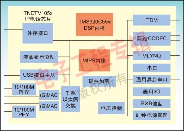 圖2:TNETV1050/1055 IP電話處理器。