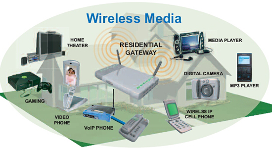 在家中傳送廣播質(zhì)量的視頻將需要住宅網(wǎng)關(guān)整合多種有線和無線技術(shù)、安全特性和服務(wù)質(zhì)量(QoS)能力。住宅網(wǎng)關(guān)需要支持最新的無線連網(wǎng)技術(shù),例如目前的802.11g以及暫露頭角的802.11n、802.11d/e和802.11r標(biāo)準(zhǔn)。多種有線家庭連網(wǎng)技術(shù)也在考慮之內(nèi),所以住宅網(wǎng)關(guān)應(yīng)能支持以太網(wǎng)、同軸電纜多媒體聯(lián)盟(MOCA)、家用電話線網(wǎng)絡(luò)聯(lián)盟(HPNA)、家庭插電聯(lián)盟(HPPA)和通用電力線協(xié)會(UPA)等機(jī)構(gòu)推出的有線家庭聯(lián)網(wǎng)技術(shù)。