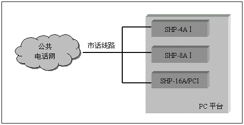 單純的語(yǔ)音系統(tǒng)(不需要座席,傳真等附加功能),可以采用SHP-4A、SHP-8A和SHP-16A系列的模擬線語(yǔ)音卡來構(gòu)成,并且不需要連接卡間交換總線,這類系統(tǒng)如證券電話委托系統(tǒng),語(yǔ)音信箱留言系統(tǒng),銀行稅務(wù)查詢催繳系統(tǒng)等,其典型系統(tǒng)結(jié)構(gòu)如下: