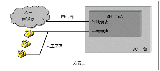 人工座席是呼叫中心(Call Center)一類應(yīng)用的主要組成部分。三匯語(yǔ)音卡對(duì)人工座席提供了兩套解決方案:使用SHU系列座席卡,通過交換總線與其它卡互聯(lián),為整個(gè)系統(tǒng)提供座席資源。使用SHT系列模塊化語(yǔ)音卡,在部分通道使用座席模塊,可用單塊卡實(shí)現(xiàn)座席和外線系統(tǒng)。第二種方式特別適用于小型呼叫中心,總機(jī)話務(wù)員等應(yīng)用。三匯公司的座席通道可以直接連接各類普通電話機(jī),利用座席卡配置相應(yīng)的軟件,還可以構(gòu)成板卡交換機(jī),完全取代企業(yè)用戶交換機(jī)。這類應(yīng)用的典型結(jié)構(gòu)如下圖: