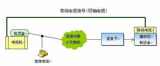 目前,越來越多的星級(jí)賓館開通了VOD點(diǎn)播系統(tǒng),從而開展收費(fèi)節(jié)目服務(wù)。該系統(tǒng)可以利用原有的賓館有線電視網(wǎng)絡(luò)和客房電話線來實(shí)現(xiàn),最大限度地利用了原有的設(shè)備,節(jié)省了投資。其系統(tǒng)構(gòu)成如下圖所示: