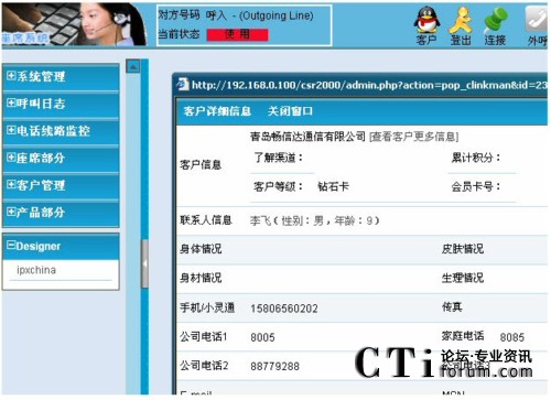 作為呼叫中心的核心功能,來(lái)電彈屏功能在客戶和服務(wù)代表之間建立了溝通的橋梁。當(dāng)電話接入客服代表電話振鈴的同時(shí),電腦屏幕會(huì)彈出客戶的相關(guān)資料。如果是新客戶,則彈出空白頁(yè)面,客服代表可以說(shuō)歡迎的同時(shí)錄入客戶資料,以備客戶下次來(lái)電時(shí)查詢。當(dāng)客戶在網(wǎng)上選購(gòu)產(chǎn)品時(shí),有問(wèn)題可以隨時(shí)打電話溝通,來(lái)時(shí)的同時(shí),座席電腦上彈出客戶已經(jīng)填寫(xiě)的資料,座席對(duì)客戶的資料一目了然,提高了工作效率。來(lái)電彈屏的頁(yè)面可以根據(jù)用記要求定制。