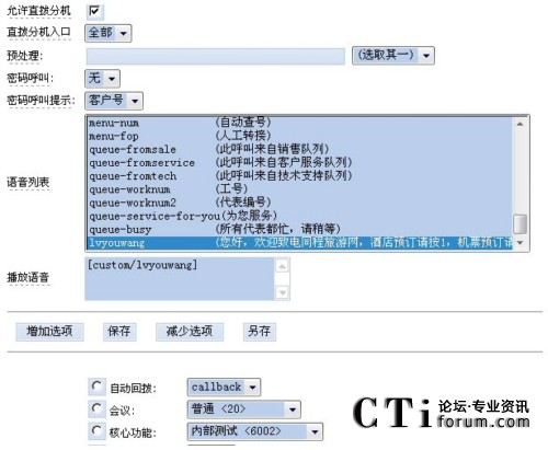 根據(jù)需要,用戶(hù)可以自己設(shè)定不同的語(yǔ)音以及不同的路由選擇,客戶(hù)呼入后就可以轉(zhuǎn)移到不同的服務(wù)組甚至不同的企業(yè)。