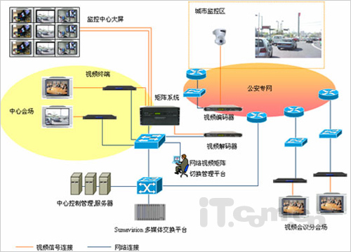 針對的公安系統(tǒng)的需求以及上述原則,北京數(shù)碼視訊專門推出了符合公安需求的視頻會議系統(tǒng)版本和專門針對公安行業(yè)的視頻會議解決方案(網(wǎng)絡(luò)圖如下)。整體系統(tǒng)都體現(xiàn)了簡明、高效、清晰、穩(wěn)定可靠的特征。能有效提高指揮決策的效率,突出信息化優(yōu)勢,并應(yīng)付一些突發(fā)事件或特殊情況。遇到緊急場合,如全國犯罪抓捕、救災(zāi)、防汛、傳染性疾病突襲等,可以利用視頻服務(wù)系統(tǒng)及時了解情況、發(fā)布決策以及協(xié)調(diào)工作等等。