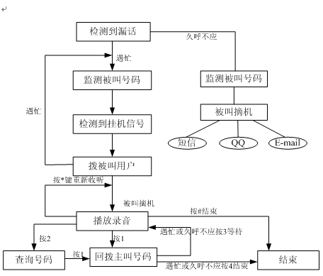 固話漏話業(yè)務(wù)是基于目前固網(wǎng)上存在著的大量遇忙呼叫和久呼不應(yīng)的現(xiàn)狀,通過漏話監(jiān)測(cè)設(shè)備實(shí)時(shí)監(jiān)測(cè)主叫用戶和被叫用戶的業(yè)務(wù)信息(如主被叫用戶的屬性、電話號(hào)碼、來電時(shí)間、是否已掛機(jī)等),并按照預(yù)定的業(yè)務(wù)邏輯和方式,提示用戶回呼原主叫用戶。通過這種方式,將外網(wǎng)的話務(wù)量轉(zhuǎn)移到本網(wǎng)內(nèi),從而提高業(yè)務(wù)收入。