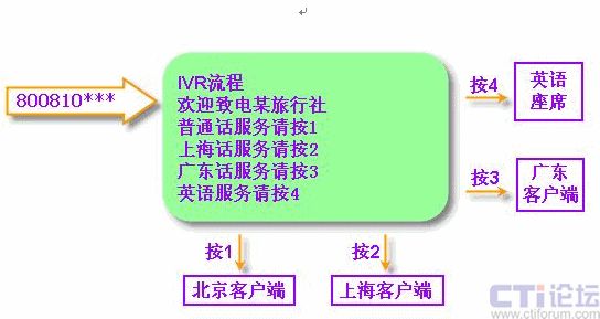 通訊平臺中設置語音菜單選項,為呼入系統(tǒng)的客戶提供操作引導和自動語音咨詢服務?蛻粲秒娫挀苋胫行暮,通過不斷地在話機上按鍵與計算機進行交互應答,計算機收到按鍵便播放相關語音。用此技術可為客戶提供7×24小時不間斷的多功能自動語音服務。