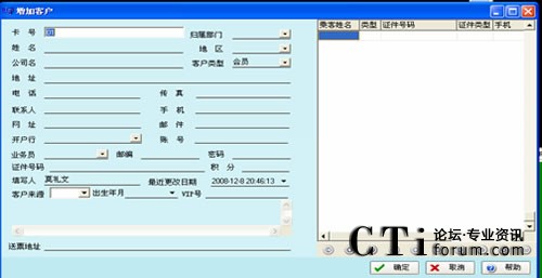 每次用戶(hù)呼入時(shí),CRM系統(tǒng)會(huì)自動(dòng)彈出用戶(hù)所有的相關(guān)資料,如電話(huà)號(hào)碼,客戶(hù)姓名,電子郵件,地址,航班,目的地,酒店等等,大大方便了坐席員對(duì)新老客戶(hù)資料的維護(hù)。