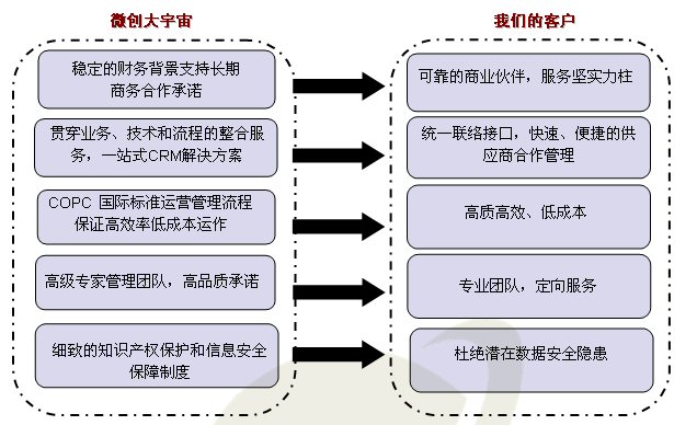Wicresoft 微創(chuàng)軟件是上海聯(lián)和投資有限公司控股的國家重點(diǎn)軟件企業(yè),是微軟公司在華最重要的投資項(xiàng)目之一。自2002年5月成立以來,本著“迅捷、誠信、盡責(zé),打造值得信賴的國際化IT外包與服務(wù)提供商”的愿景,微創(chuàng)一直專注于信息技術(shù)外包(ITO)和業(yè)務(wù)流程外包(BPO)領(lǐng)域,不斷積累豐富的先進(jìn)技術(shù)、細(xì)致高效的流程管理、靈活調(diào)配的規(guī)模化專業(yè)人員,旨在為客戶提供度身定制的高績(jī)效專業(yè)服務(wù),打造完美客戶體驗(yàn)。