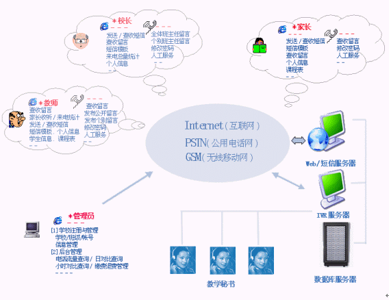 為配合教育部"校校通"工程的順利實施,深圳市潤聲信息系統(tǒng)有限公司推出的"家校直通車"系統(tǒng)(SchoolToHome),在家長和老師之間搭建起一座信息化橋梁。該系統(tǒng)經(jīng)過兩年多,以及多個地市的實施,得到了廣大老師、學(xué)生及家長的好評!