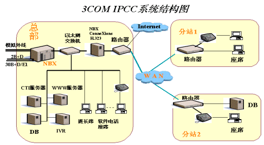 二、3Com IPCC系統(tǒng)組成結(jié)構(gòu)圖: