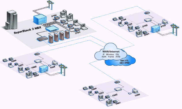 內(nèi)部兩網(wǎng)合一:管理、維護、升級方便靈活NBX網(wǎng)絡呼叫中心的核心是3Com公司的NBX網(wǎng)絡電話交換機,它具有PBX的功能,支持多種外線接入方式,呼入的語音信號轉換為數(shù)據(jù)包,在局域網(wǎng)內(nèi)部傳輸,實現(xiàn)局域網(wǎng)內(nèi)部語音、數(shù)據(jù)的統(tǒng)一。