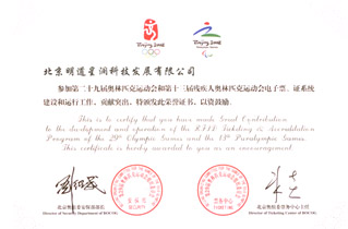2008奧運(yùn)會(huì)、殘奧會(huì)榮譽(yù)證書(shū)