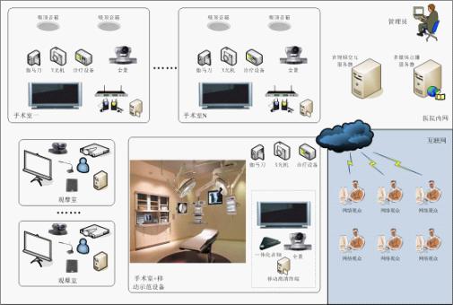 迅流高清手術(shù)示教系統(tǒng)依托專項(xiàng)網(wǎng)絡(luò),采用硬件MCU組建視頻會議系統(tǒng)服務(wù)器,專業(yè)直播點(diǎn)播服務(wù)器組件基于互聯(lián)網(wǎng)的直播和基于用戶要求的點(diǎn)播編輯系統(tǒng),觀摩室和手術(shù)室采用視頻終端、高清采集終端、移動(dòng)高清終端等眾多高清設(shè)備共同組成高清交互展示平臺。