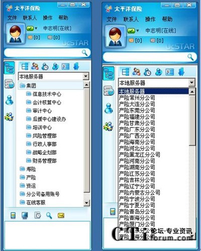 覆蓋全國(guó)的太平洋保險(xiǎn)不僅在各省的城市有分公司,其分支機(jī)構(gòu)也遍布全國(guó)各個(gè)區(qū)縣。如何將各項(xiàng)政策快速有效地傳達(dá)給各個(gè)分支機(jī)構(gòu),成為保險(xiǎn)公司信息總部一直探索的一條“路”。如何讓基層機(jī)構(gòu)也能參與日常的各項(xiàng)大大小小的會(huì)議,如何讓分布在全國(guó)的企業(yè)員工接受良好的培訓(xùn)?傳統(tǒng)的通訊手段似乎難以滿足需要。中國(guó)太平洋保險(xiǎn)(集團(tuán))股份有限公司是全國(guó)性股份制商業(yè)保險(xiǎn)公司,成立于1991年4月,總部設(shè)在上海。大部分分公司已經(jīng)自行使用很多即時(shí)通訊產(chǎn)品,但由于系統(tǒng)分散,各分公司管理能力存在差異,造成目前CPIC內(nèi)部即時(shí)通訊軟件使用相對(duì)比較混亂,部分員工還存在使用MSN、QQ的現(xiàn)象,這種現(xiàn)象已經(jīng)給公司安全生產(chǎn)帶來了一定的隱患。為此,太平洋保險(xiǎn)集團(tuán)的應(yīng)用理應(yīng)跳出即時(shí)通信的應(yīng)用,選擇一個(gè)擴(kuò)展性、控制性、可管性強(qiáng)大的通信平臺(tái)。
