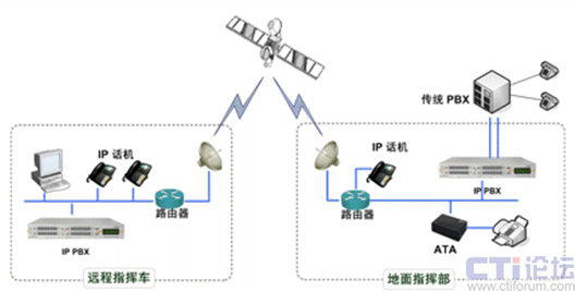 在有關(guān)部隊的應(yīng)用案例中,有兩方面比較常見,應(yīng)用也比較廣泛。首先是借助衛(wèi)星的遠(yuǎn)程指揮通訊,我們?yōu)榈孛鏅C關(guān)與遠(yuǎn)程指揮車之間架設(shè)起溝通的橋梁,除了電話、傳真等基本業(yè)務(wù),還通過IP-PBX系統(tǒng)提供了多方會議、語音留言、熱線電話等擴展業(yè)務(wù),在即使是雙星四跳的高延時環(huán)境下建立起穩(wěn)定的語音通信,保障了部隊指揮的有效下達。