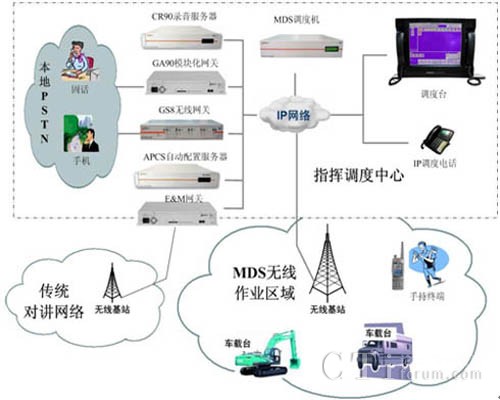 MDS系統(tǒng)可以應用于各種作業(yè)現(xiàn)場的指揮調(diào)度, MDS系統(tǒng)不但支持系統(tǒng)基本的語音通信,調(diào)度中心可以通過視頻、數(shù)據(jù)、文本消息等綜合的多媒體方式與作業(yè)人員進行通信交互,滿足各種復雜環(huán)境下的指揮調(diào)度需求。系統(tǒng)可以通過GS8無線網(wǎng)關、GA90