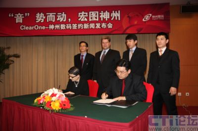 2009年3月10日,國內(nèi)最大的整合IT服務(wù)提供商神州數(shù)碼和國際領(lǐng)先的高端音頻會(huì)議系統(tǒng)供應(yīng)商ClearOne在京簽約,共同拓展國內(nèi)音頻會(huì)議系統(tǒng)市場,依托ClearOne的技術(shù)、產(chǎn)品、行業(yè)優(yōu)勢和神州數(shù)碼強(qiáng)大的市場號召力及運(yùn)維能力,開創(chuàng)國內(nèi)音頻會(huì)議系統(tǒng)領(lǐng)域全新格局,為企業(yè)、教育、培訓(xùn)、醫(yī)療及政府等行業(yè)客戶帶來全新震撼體驗(yàn)!