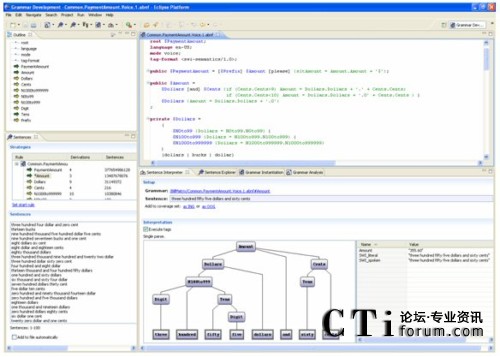 這里強(qiáng)調(diào)的Eclipse插件,除了本身作為優(yōu)秀工具,還提供了附加于Eclipse工作臺(tái)內(nèi)的順暢互操作性:你可以一邊看著對(duì)應(yīng)呼叫者輸入的對(duì)話流程,一邊檢查和完成語(yǔ)音識(shí)別語(yǔ)法;你也可以一邊構(gòu)建連接后臺(tái)的Web服務(wù)代碼,一邊通過簡(jiǎn)單地拖放來調(diào)整應(yīng)用邏輯。開發(fā)者首次擁有了對(duì)所有應(yīng)用方面的同時(shí)控制,無須在不同IDE之間進(jìn)行切換,或者在選擇單一環(huán)境時(shí)在特性上的折衷。