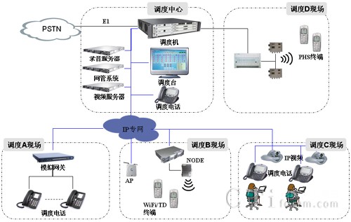 系統(tǒng)支持豐富的調(diào)度終端,包括模擬話機(jī)、IP話機(jī)、視頻話機(jī),以及WiFi/PHS/TD等制式的手機(jī)終端,實(shí)現(xiàn)有線無線一體化調(diào)度。