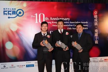 CTI論壇(ctiforum)11月20日消息(記者 張塵):11月19日晚,大中華區(qū)領(lǐng)先信息通訊技術(shù)服務(wù)商第一線安萊于2009年香港客戶(hù)中心大獎(jiǎng)評(píng)選晚會(huì)中,再次囊括三項(xiàng)大獎(jiǎng):最佳外包客戶(hù)中心 (呼入)、最佳華南客戶(hù)中心 (100席以上) 及最佳離岸客戶(hù)中心。加上上個(gè)月由中國(guó)呼叫中心協(xié)會(huì)CNCCA授予的“2009中國(guó)(亞太)最佳外包呼叫中心”及全球IP通訊聯(lián)盟所頒發(fā)的“最佳外包呼叫中心供應(yīng)商(國(guó)內(nèi))”獎(jiǎng),第一線安萊在這個(gè)金秋時(shí)節(jié)可謂收獲頗豐。第一線安萊IP呼叫中心再次獲得業(yè)界的認(rèn)同,這也體現(xiàn)了第一線安萊在該項(xiàng)產(chǎn)品及服務(wù)方面擁有領(lǐng)先的優(yōu)勢(shì),通過(guò)持續(xù)進(jìn)步,為客戶(hù)創(chuàng)造有利的營(yíng)運(yùn)模式,也有助于奠定企業(yè)服務(wù)的標(biāo)準(zhǔn),再度奪獎(jiǎng)乃實(shí)至名歸。