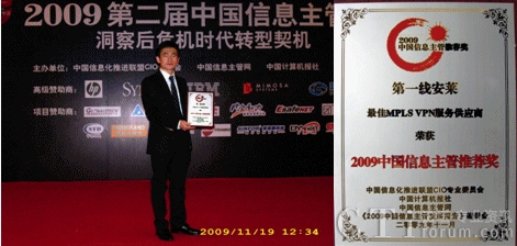 CTI論壇(ctiforum)11月25日消息(記者 張塵):2009年11月19日,2009年中國信息主管年會在北京世紀(jì)金源大飯店盛大召開,會議共吸引了各行業(yè)千名CIO線上與線下的參與。作為中國CIO云集的高峰會議,第一線安萊全程參與了本次大會,從產(chǎn)品方案與展示等方面向業(yè)界展示了第一線安萊10年多來在MPLS VPN服務(wù)領(lǐng)域的最佳實踐經(jīng)驗與卓越的市場領(lǐng)導(dǎo)地位,贏得了各與會嘉賓及CIO們的普遍認(rèn)同和稱贊。