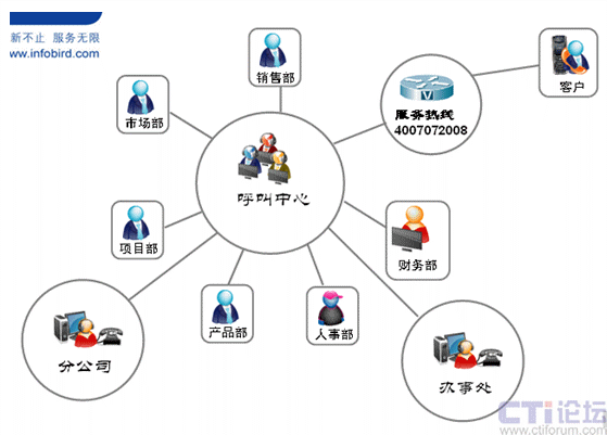 訊鳥軟件現(xiàn)有員工150人,總部位于北京,在上海設(shè)有一個分公司,在廣州、深圳分別設(shè)有一個辦事處。通過將呼叫中心與企業(yè)運營管理的融合,大大提高了員工的工作效率,降低了運營管理成本。訊鳥軟件副總裁姜冬良先生告訴我們,自2007年6月在企業(yè)運營管理中加入呼叫中心之后,所有員工對外聯(lián)系的名片上只有公司的400號碼和員工分機,不再顯示員工的手機,這樣有效的避免了因為員工流失造成的客戶服務(wù)無法及時響應(yīng)的現(xiàn)象,同時,所有員工的工作狀態(tài)可以通過報表系統(tǒng)有效的衡量,尤其是銷售人員和分公司、辦事處人員的工作,管理層可以及時的檢查、監(jiān)督和糾正。