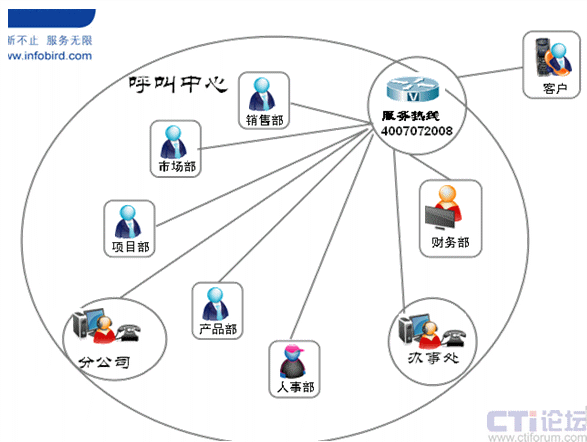 呼叫中心可以與企業(yè)的財務(wù)系統(tǒng)、OA系統(tǒng)、ERP系統(tǒng)、CRM系統(tǒng)等進行整合,幫助企業(yè)輕松實現(xiàn)整個業(yè)務(wù)流程的管理、企業(yè)內(nèi)外溝通過程的管理。每個流程、每個節(jié)點都是可以被量化,可以被審查和糾正的。呼叫中心部門已經(jīng)不再局限于對客戶的服務(wù)提供,已經(jīng)完全成長為一個提升企業(yè)效率和運營能力的服務(wù)管理部門。通過下表我們看到呼叫中心在組織中的職能架構(gòu)發(fā)生變化,已經(jīng)完全成為與客戶溝通的最重要的部門之一。