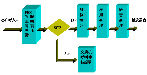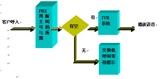 呼入一般都先通過(guò)ACD進(jìn)行排隊(duì),然后根據(jù)用戶選擇進(jìn)入子系統(tǒng),流程圖如下: