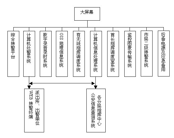 本次建設需要采用綜合通信技術,將110、119、122系統的計算機網絡和有、無線通信網有機互聯,建成集接處警信息獲取、統計、查詢、發(fā)布于一體,并通過地理信息和多媒體大屏幕顯示等輔助系統的綜合指揮調度,實現110、119、122快速反應、信息共享的目的。為此,各系統應分別具有下述功能: