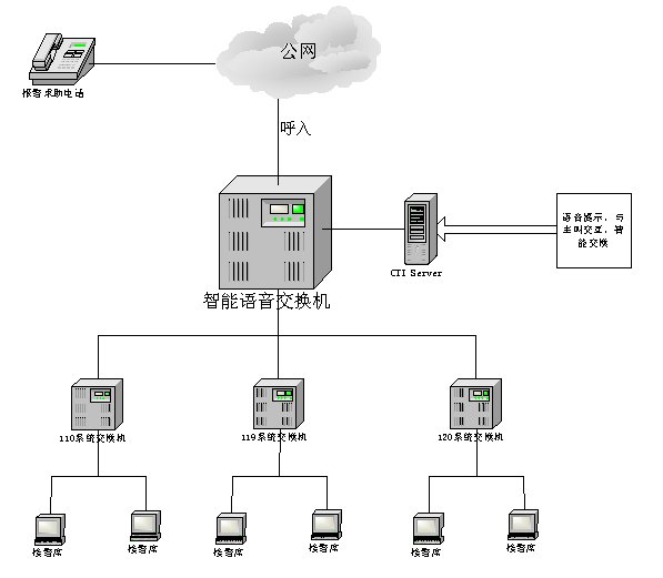 簡單的來說,系統就是把電話網和計算機網絡兩種截然不同的網絡有機的結合起來,以電話網的方便和計算機網絡的強大,優(yōu)勢互補、協同工作。并集語音技術、呼叫處理技術、計算機網絡技術和數據庫技術為一體。如下圖: