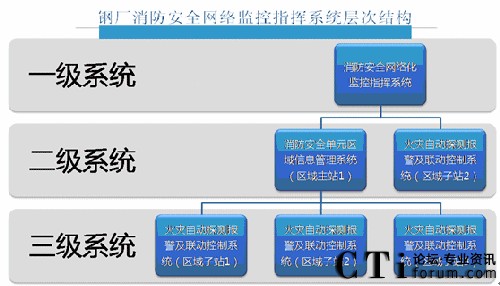 二級系統(tǒng)為“消防安全單元區(qū)域信息管理系統(tǒng)(區(qū)域主站)”,設(shè)在消防控制中心,是分廠級的消防安全信息管理中心,是一級和三級系統(tǒng)之間信息上傳下達(dá)的匯接點,其功能為:①及時上傳安全單元區(qū)域的火災(zāi)信息給消防安全監(jiān)控指揮中心;②對本單元區(qū)域的一級系統(tǒng)進行實時監(jiān)控和管理;③與分廠級生產(chǎn)信息管理中心進行信息交互和應(yīng)急聯(lián)動;④與其它消防安全單元區(qū)域信息管理系統(tǒng)進行對等通訊聯(lián)絡(luò)。