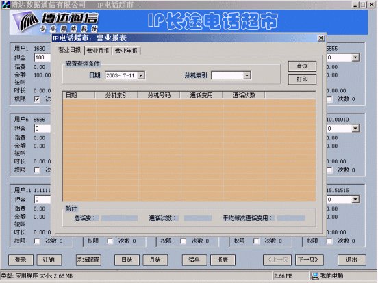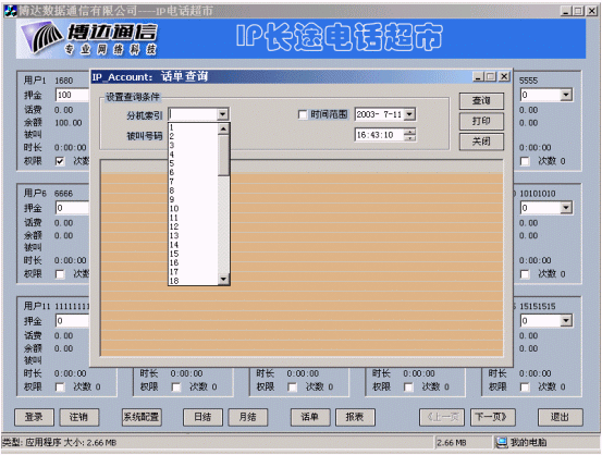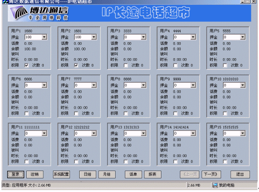 博達公司在IP電話認證的基礎(chǔ)上開發(fā)的IP電話計費計費系統(tǒng),實現(xiàn)了用戶管理、卡用戶批量生成、費率設(shè)置、折扣設(shè)置、話單查詢、帳務(wù)查詢、管理統(tǒng)計、運營分析等功能,為電信運營商的運營和企業(yè)用戶對IP電話的內(nèi)部管理和服務(wù)提供了有利條件。