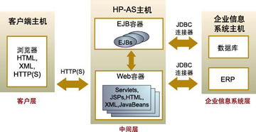 ----通過HP-AS開發(fā)的應用都是典型的分布式應用。設計分布式應用的普遍方法是利用3層架構: 與客戶交互的客戶層(Client Layer);商務與表示層(Business
