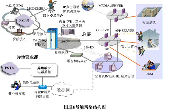 因此需要對現(xiàn)有分散的資源進行大規(guī)模整合,并對包括網(wǎng)上交易用戶在內(nèi)的各種客戶提供全方位、高層次的服務(wù),而呼叫中心的建設(shè)就是一個有效手段。伴隨中國證券市場同步成長的國通證券意識到這個問題從領(lǐng)導到員工都有深切的憂患意識:如何提供服務(wù)質(zhì)量和管理水平。經(jīng)過充分的調(diào)研及對國內(nèi)外眾多廠商的綜合比較,最后選擇了華為INTESS平臺來組建交換機方式的呼叫中心--E號通。