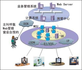 運營支撐層與視訊交換層可以兼容各個視訊終端生產廠家提供的滿足標準的終端,在視訊實現(xiàn)層為電信運營商的客戶提供多種方便的預約手段,并推出“主叫呼集”功能,使用戶能夠方便地自主召集各種視訊業(yè)務。“一卡多號”方便用戶付費、使用;全面的級連MCU主席控制能力使用戶能靈活操縱視訊業(yè)務的進行!爸鹘泻艏、“一卡多號”等功能的提供,使復雜的視訊業(yè)務真正成為電信運營商滿足大客戶、適應電信市場發(fā)展的“傻瓜化”業(yè)務。