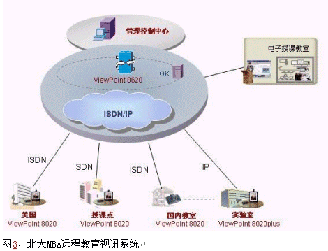 北京大學(xué)是我國(guó)首批被確定開展現(xiàn)代遠(yuǎn)程教育試點(diǎn)的院校之一,自1999年起至今,北京大學(xué)現(xiàn)代遠(yuǎn)程教育已經(jīng)遍布全國(guó)18個(gè)省市,2002年北大MBA作為國(guó)內(nèi)先進(jìn)的遠(yuǎn)程教育項(xiàng)目作為一項(xiàng)重要的國(guó)際間的教育交流項(xiàng)目,欲通過建設(shè)視訊系統(tǒng)和美國(guó)互通,進(jìn)行國(guó)際間的MBA遠(yuǎn)程教學(xué),同時(shí)可以進(jìn)行幾個(gè)分點(diǎn)之間的交互式視頻會(huì)議,提高學(xué)習(xí)效率。