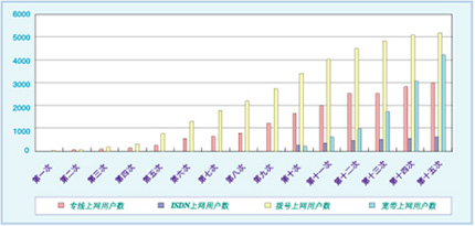 圖一:歷年調(diào)查上網(wǎng)人數(shù)表(第十五次中國互聯(lián)網(wǎng)發(fā)展況狀分析報(bào)告)