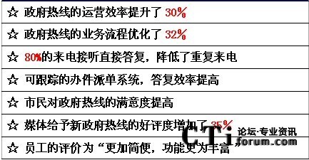 在我們的采訪中,深圳市政府認為,建設(shè)法治政府、廉潔政府、效率政府、有限政府、陽光政府和責任政府,前提是政府必須完成轉(zhuǎn)型。政府行政體制改革的最終目標是要達到行政權(quán)力規(guī)范,服務(wù)型的一個政府。因而,為市民提供專業(yè)權(quán)威和有效的政府熱線服務(wù)成為題中之意。通過深圳市12345政府熱線的成功應(yīng)用,我們可以體會到呼叫中心應(yīng)用于政府及公用事業(yè)部門后,受益的不僅是千百萬公眾,更重要的是加速了在社會急劇變革時代政府職能的現(xiàn)代化轉(zhuǎn)型。