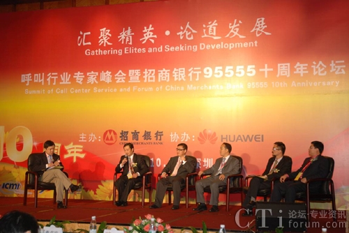 CTI論壇(ctiforum)10月29日消息(記者 張塵):10月23日,由招商銀行主辦,華為技術(shù)有限公司協(xié)辦的“匯聚精英·論道發(fā)展”呼叫行業(yè)專家峰會(huì)暨招商銀行95555十周年論壇在深圳圣廷苑酒店舉行。招商銀行總行副行長(zhǎng)丁偉先生和華為公司高級(jí)副總裁鄧飚先生出席了本次大會(huì)。來自銀行、證券、基金、保險(xiǎn)等38家主要金融機(jī)構(gòu)及南航、聯(lián)想、萬科、支付寶等30家國(guó)內(nèi)知名企業(yè)高管逾200余人參加。與會(huì)嘉賓分享了國(guó)際與國(guó)內(nèi)呼叫中心建設(shè)經(jīng)驗(yàn)、信息化的發(fā)展潮流、呼叫中心戰(zhàn)略轉(zhuǎn)型與運(yùn)營(yíng)管理能力提升等內(nèi)容。華為鄧飚先生表示:“十年來,招商銀行電話銀行中心的成功表明了華為向客戶提供定制化、個(gè)性化貼身服務(wù)策略的成功!