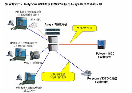 安裝了專門為Avaya定制的系統(tǒng)軟件Polycom VSX系列視頻終端和MGC可以直接和Avaya IP語(yǔ)音系統(tǒng)集成,不需要Polycom