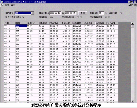 隨著利盟公司客戶服務(wù)系統(tǒng)的開通,使傳統(tǒng)的電話服務(wù)提高到了一個(gè)新的階段;一方面借助客戶服務(wù)系統(tǒng)提供的統(tǒng)計(jì)分析功能,使客戶服務(wù)中心的績(jī)效考核更加準(zhǔn)確、高效和科學(xué);另一方面通過(guò)應(yīng)用先進(jìn)的信息技術(shù)和產(chǎn)品,可以極大地提高客戶服務(wù)的質(zhì)量、效率和滿意度,從而對(duì)提升公司形象,促進(jìn)產(chǎn)品銷售發(fā)揮積極的作用。