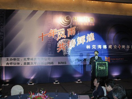 2004年6月10日,林克海德公司在昆侖飯店迎來(lái)了十年華誕,林克海德的新朋老友歡聚一堂,齊唱同一首歌。美國(guó)NMS總裁Bob,太平洋網(wǎng)絡(luò)總裁Tony都遠(yuǎn)程趕來(lái)祝賀。在過(guò)去的十年中,林克海德見證了中國(guó)電信增值業(yè)務(wù)領(lǐng)域從無(wú)到有、從簡(jiǎn)單的語(yǔ)音信箱到目前斑斕多彩的彩信業(yè)務(wù)的發(fā)展歷程,被譽(yù)為國(guó)內(nèi)板卡市場(chǎng)的旗艦。現(xiàn)在隨著中國(guó)通信領(lǐng)域電信增值業(yè)務(wù)的發(fā)展,林克海德憑借語(yǔ)音增值業(yè)務(wù)方面的豐富經(jīng)驗(yàn),成為業(yè)內(nèi)知名的語(yǔ)音、傳真、數(shù)據(jù)等多媒體業(yè)務(wù)開發(fā)平臺(tái)的提供商和系統(tǒng)方案服務(wù)商,林克海德公司走進(jìn)了新的語(yǔ)音時(shí)代!