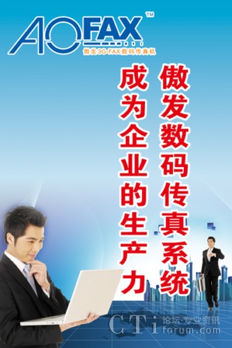 CTI論壇(ctiforum)4月24日消息(記者 歐陽): 經(jīng)濟發(fā)展外圍形式嚴峻,經(jīng)濟增速放緩,人工、生產(chǎn)成本高位運行,部分企業(yè)效益大幅降低。那么,中小企業(yè)如何提高自身的競爭力呢?作為企業(yè)辦公通信必不可少的設(shè)備,電子傳真機、數(shù)碼傳真機、無紙傳真機、網(wǎng)絡(luò)傳真機、電腦傳真機、傳真卡、傳真群發(fā)器、傳真服務(wù)器等新型電腦傳真系統(tǒng)的迅速熱銷,也能助企業(yè)一臂之力,由金恒科技(深圳)有限公司推出的傲發(fā)3G-FAX(AOFAX)系列電子傳真和傳真服務(wù)器產(chǎn)品是其中的佼佼者,占據(jù)著新型傳真市場的大半江山,受到廣大消費者的一致好評。