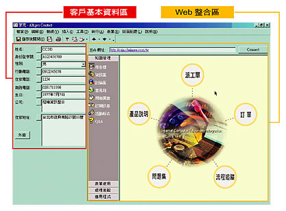 AltiGen可整合Web機(jī)制,Web為全世界Internet的標(biāo)準(zhǔn)介面,更是整合全球資源達(dá)無遠(yuǎn)弗屆境界的功臣,同時企業(yè)主可在其上輕易開發(fā)或整合其他程式,更可整合Web跑單 (Work Flow)、訂單等功能,使用者可一邊與客戶通話,一邊在電腦螢?zāi)簧舷掠唵位蚍峙晒ぷ,?jié)省人工跑單作業(yè)時間,提升作業(yè)效率,同時對于跑單狀況的追蹤管理皆可在統(tǒng)一介面獲得整合,任何更新的進(jìn)度都可第一時間掌握。