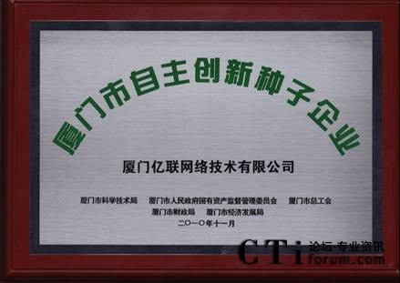 根據(jù)國家科技部、國務院國資委和全國總工會三部委制定的“創(chuàng)新型企業(yè)試點工作實施方案”和廈門市“技術(shù)創(chuàng)新引導工程實施方案”具體要求,市科技局、市國資委、市總工會、市財政局、市經(jīng)發(fā)局聯(lián)合開展了2010年廈門市自主創(chuàng)新示范、試點、種子企業(yè)評選工作。經(jīng)專家評審和市五部門聯(lián)合審核后,廈門億聯(lián)網(wǎng)絡(luò)技術(shù)有限公司(以下簡稱億聯(lián))憑借科技、環(huán)保的產(chǎn)品和強大的研發(fā)實力獲得了廈門市自主創(chuàng)新種子企業(yè)獎。