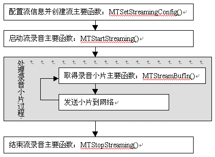 流式錄音的實現(xiàn)過程包括配置流信息并創(chuàng)建流、啟動流錄音、處理錄音小片及結(jié)束流錄音四個步驟,如下圖:
