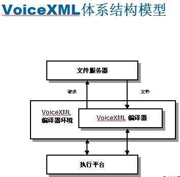 VoiceXML設(shè)計(jì)的工作原理:語(yǔ)音應(yīng)用程序作為系列頁(yè)存儲(chǔ)在類(lèi)似于網(wǎng)絡(luò)服務(wù)器的文件服務(wù)器上。從實(shí)現(xiàn)平臺(tái)接收到輸入呼叫時(shí),VoiceXML編譯程序會(huì)向文件服務(wù)器發(fā)出一個(gè)特定URL請(qǐng)求,就像用戶瀏覽網(wǎng)絡(luò)時(shí)輸入網(wǎng)站地址一樣。文件服務(wù)器可以與編譯程序直接相連,也可以設(shè)置在外部,通過(guò)本地網(wǎng)或互聯(lián)網(wǎng)的IP協(xié)議訪問(wèn)。他們可以保持應(yīng)用程序的服務(wù)邏輯,可以提供數(shù)據(jù)庫(kù)查找與其他系統(tǒng)操作功能。