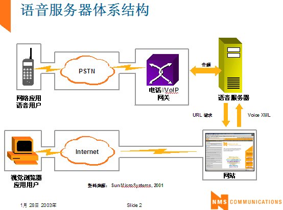 VoiceXML與多通道應(yīng)用,目前應(yīng)用正在逐步擴(kuò)大 - 電信運(yùn)營(yíng)商DoCoMo與SprintPCS等將其應(yīng)用于增值服務(wù),以增加自己的收入,旅游巨頭美聯(lián)航等將它用于旅游信息服務(wù),通用電氣等企業(yè)將它用于允許公司用戶訪問(wèn)公司的數(shù)據(jù)庫(kù)等。