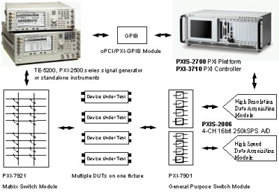 PXI控制器并搭載了Pentium III處理器。使用者可以自眾多PXI訊號(hào)產(chǎn)生模塊選擇所需,或搭配外接式儀器透過PXI-GPIB控制卡聯(lián)機(jī)。被測物(DUT)產(chǎn)生的特性參數(shù)、傳遞函數(shù)或時(shí)域信號(hào),可采用PXI-2000、TE-6100等高性能數(shù)據(jù)擷取卡進(jìn)行采樣。而后藉由ADLINK